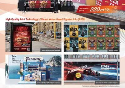 The all new Tiger600-1800TS for Poster Printing is a 1.8m wide high-speed inkjet printer which uses high-quality print technology x vibrant water-Based pigment inks (AP50). Ideal for indoor wall and booth decorations, short-term outdoor wall graphics and short-term outdoor signage indoor posters.