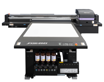 The JFX200-1213 EX is a high-performance flatbed UV printer designed for businesses needing compact size without compromising productivity. With a table dimension of 1,300mm x 1,270mm, approximately 30% smaller than the JFX200-2513 EX, this printer is ideal for various media sizes, covering all international standard A sizes.