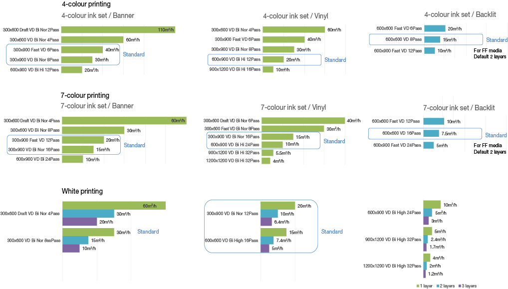 Si la impresión es efectuada en soportes con 1,5m de ancho, la velocidad de impresión es mitad.